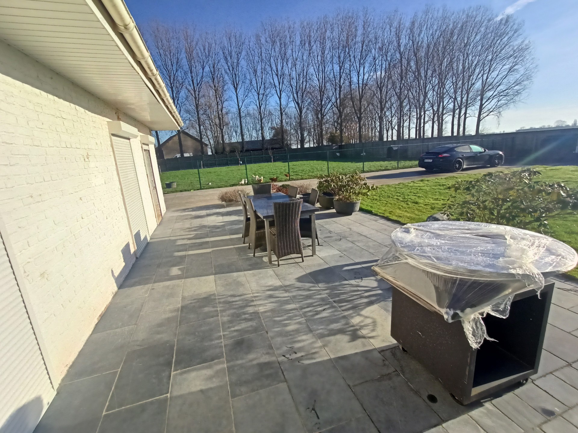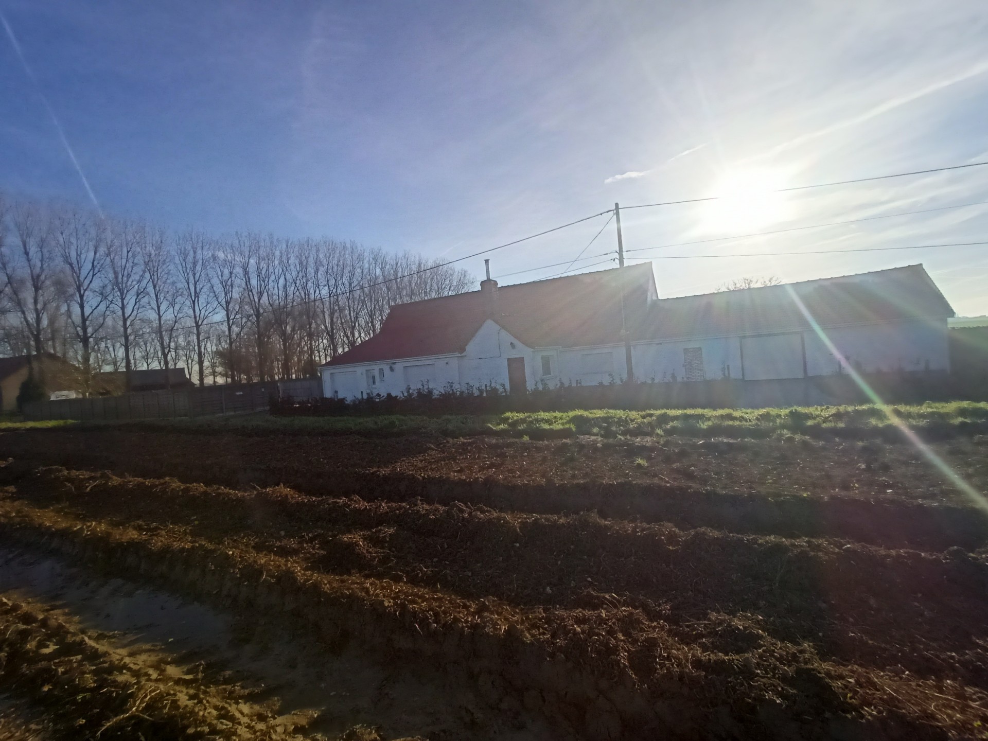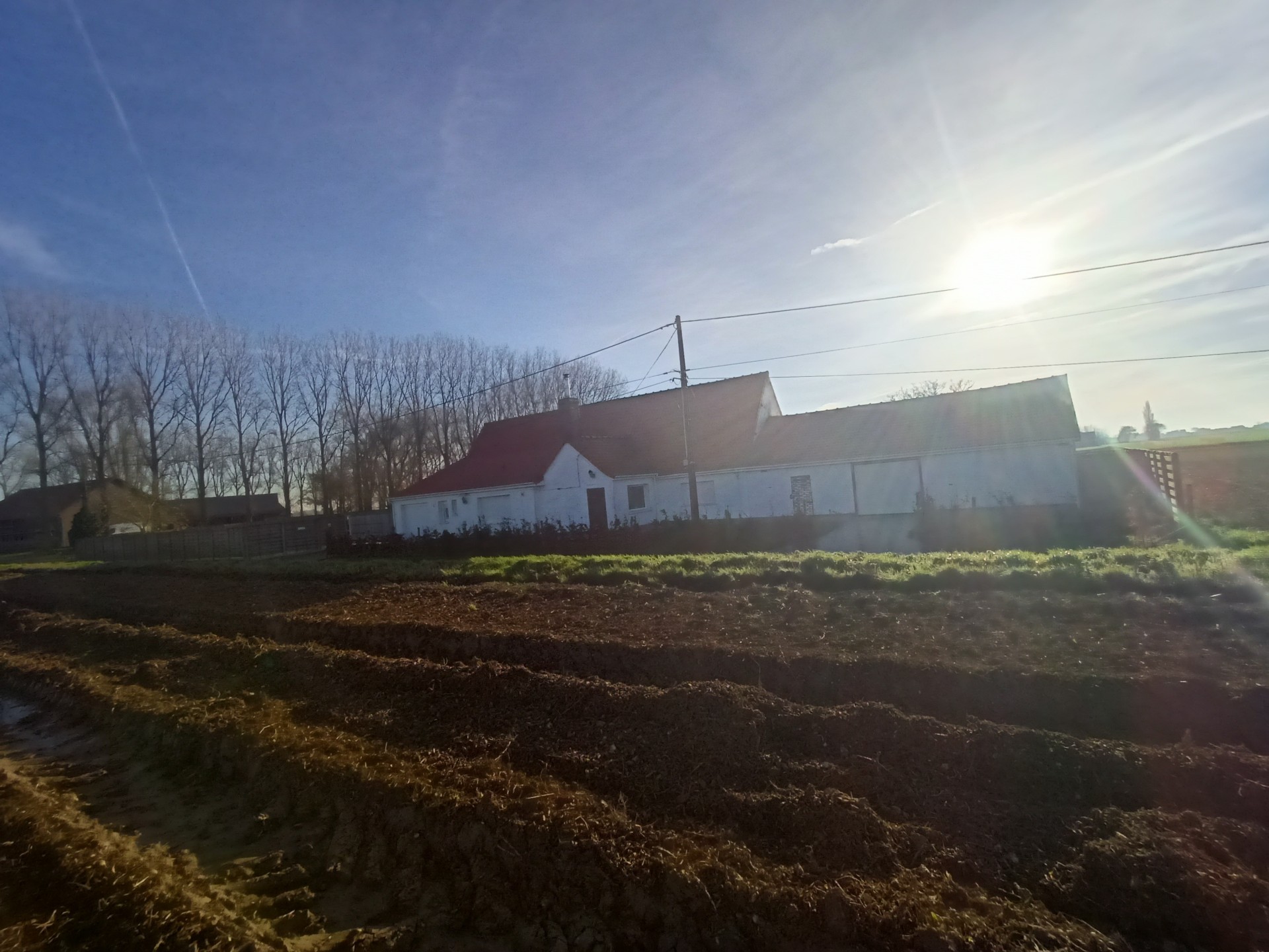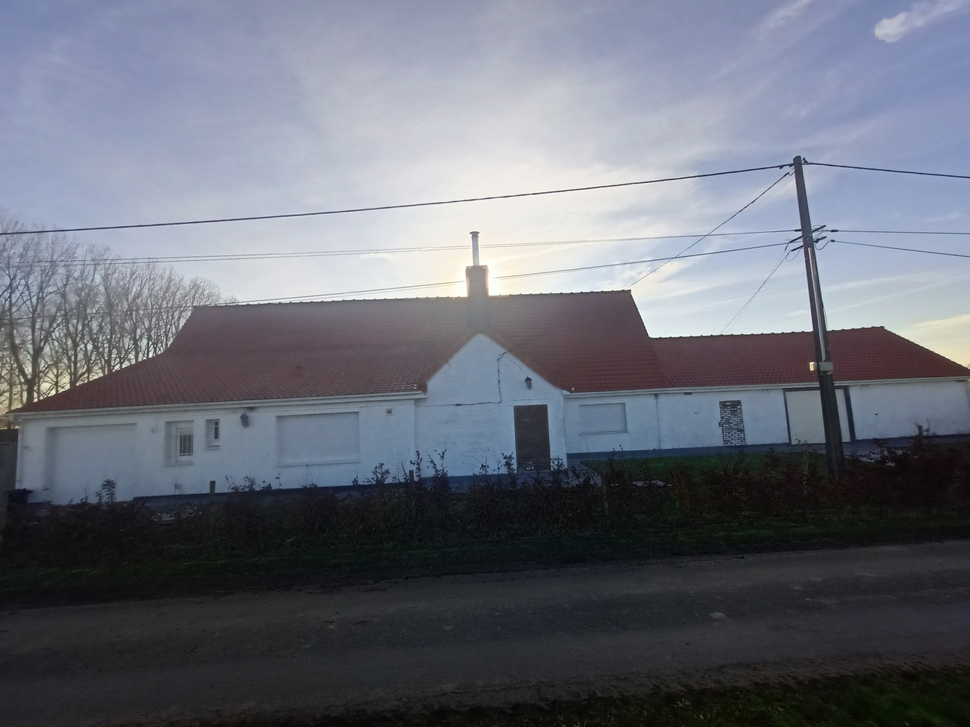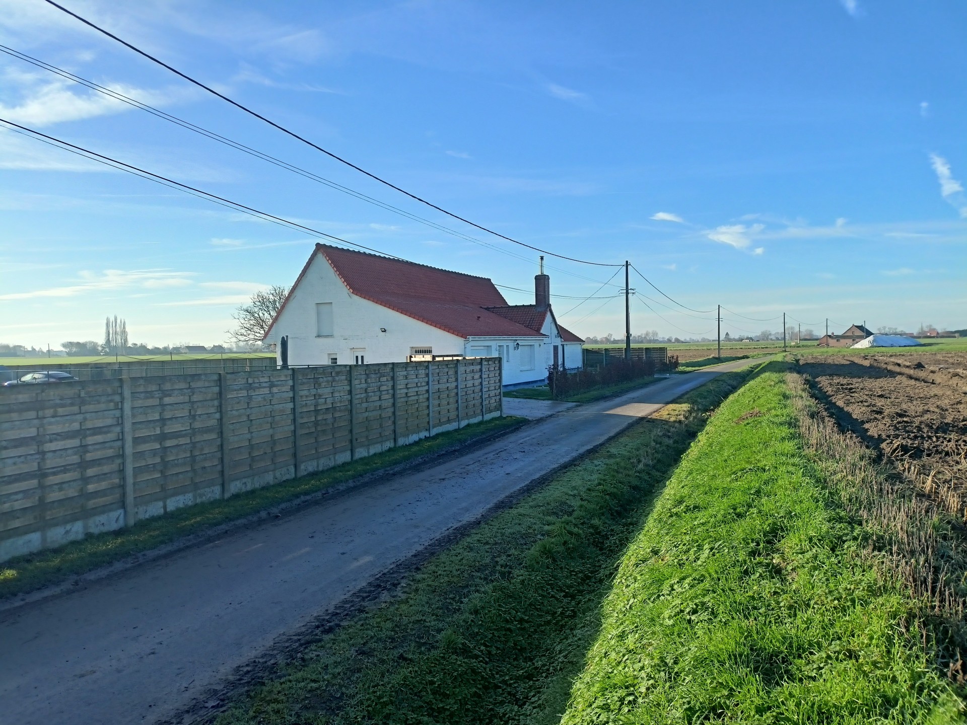 Landhuis met grote tuin langs een rustig landweggetje juist over de grens in Hondschoote. De woning is helemaal gerenoveerd. Langs de moderne inkom met vestiare komt men in de gang die toegang tot de nieuwe keuken. Er is een mooi salon en een woonkamer die uitkijkt op de tuin. Op de benedenverdieping bevinden zich drie ruime slaapkamers en een bureau, de wasplaats en de eerste badkamer met massagedouche. Op de bovenverdieping komt men via de overloop in de twee ruime slaapkamers en de tweede moderne badkamer met ligbad. Aan de woning grenzen een ruime garage met plaats voor 2 auto's Het dak van de woning werd vernieuwd. .De volledig omheinde tuin met weide en perken is toegankelijk via een elektrische poort en ligt aan de zuidkant van de woning.